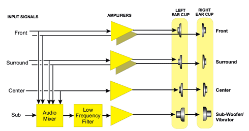 每个耳杯中有4个喇叭实现真正的5.1环绕声场 不像立体声耳机靠单个喇叭提供180度的声场,HPA2环绕声耳机装置了四个喇叭在每个耳杯中,分别掌管前置、中置、环绕和低音声道,与5.1环绕音箱产生真实5.1环绕声场的原理相同。每个喇叭由功率强劲的放大器(耳放)驱动,重现定位准确的3D环绕声,通常只有在环绕音箱才得听到的效果。 一对40mm的前置喇叭加上一对40mm的后置喇叭,超过众多立体声耳机的喇叭尺寸与性能。喇叭在耳杯中的放置与校正进行优化处理,你得到了一款真实3D效果的多声道耳机。